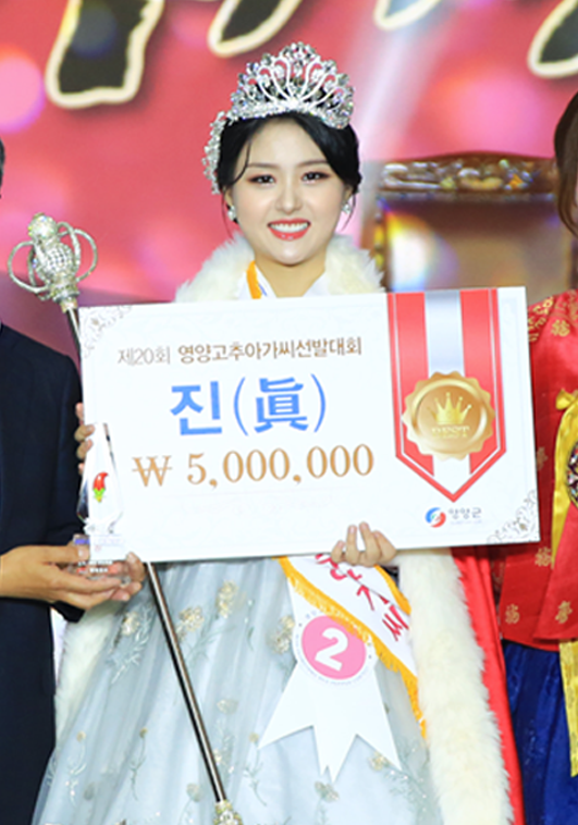 역대수상자 2024년 2022년 2010s 2000s 1990s 1980s 2022 제20회 영양고추 홍보사절선발대회 홍보사절 진 김유림 홍보사절 선 이예지 홍보사절 미 정주희 매꼬미 서지연 달꼬미 채나현 빛깔찬 박유정